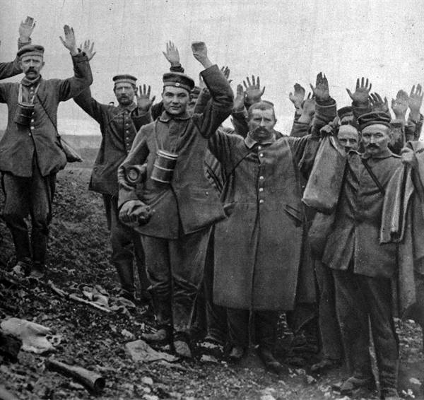 Während des britischen Angriffs bei Cambrai gefangene deutsche Soldaten