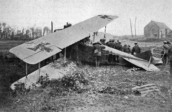 Ein während der Schlacht von Cambrai abgeschossenes deutsches Flugzeug